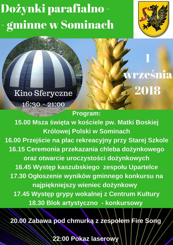 Dożynki parafialno-gminne w Sominach. Home / Artykuły / W dniu 1 września zapraszamy na dożynki parafialno-gminne, które odbędą się w Sominach.