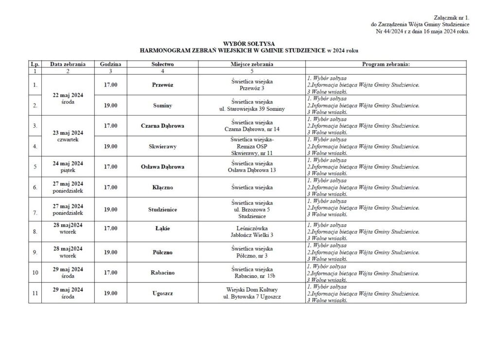 Harmonogram zebrań wiejskich na terenie Gminy Studzienice Home / Artykuły / Harmonogram zebrań wiejskich na terenie Gminy Studzienice
