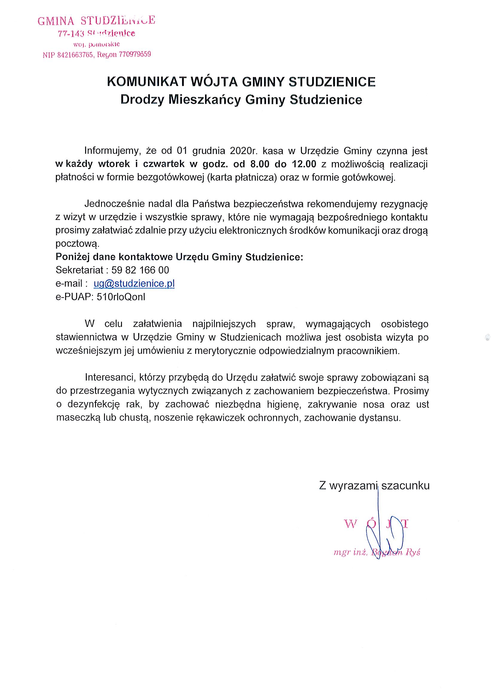 Informacja o Urzędzie Gminy w Studzienicach tekście łatwym do czytania i zrozumienia.