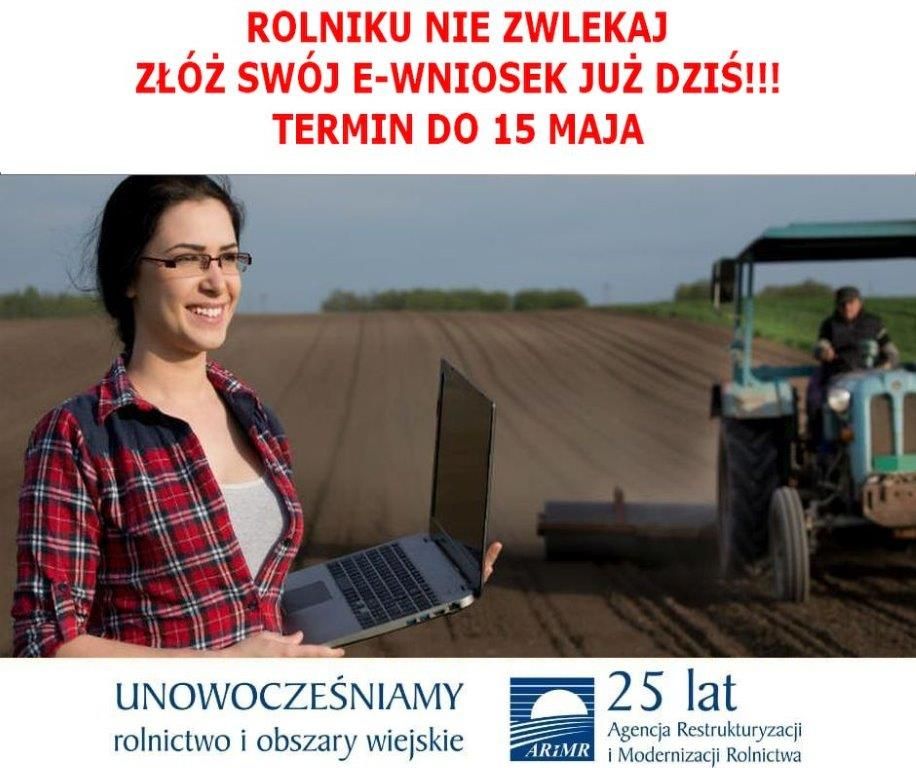 Dyrektor Pomorskiego Oddziału Regionalnego Agencji Restrukturyzacji i Modernizacji Rolnictwa w Gdyni, przypomina o zbliżającym się terminie o przyznanie płatności bezpośrednich na rok 2019 poprzez aplikację eWniosek Plus, tj. do 15 maja br.