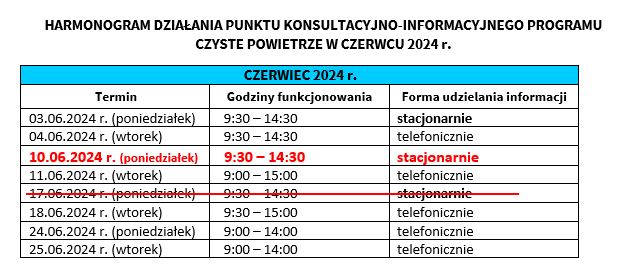 Zmiana w grafiku Punktu Konsultacyjnego „Czyste Powietrze”